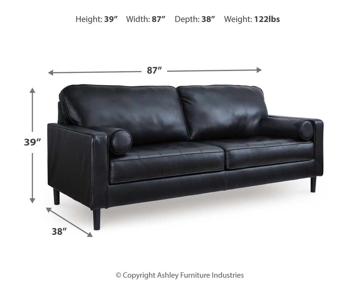 This sofa embodies timeless mid-century elegance with its linear design, sleek track arms and tapered legs. Genuine leather in the seating area adds a luxurious touch to the overall look. Experience endless style opportunities for today's living spaces.
