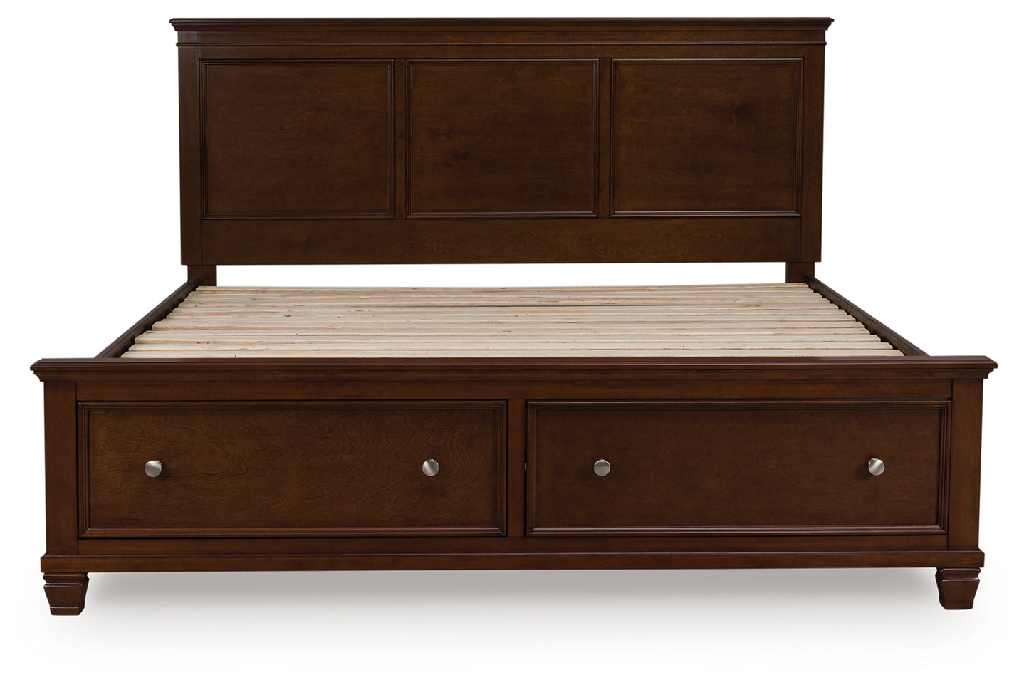 The casual design of this California king panel storage bed introduces a time-honored look to your restful retreat. Adding function to form, two storage drawers offer extra-deep space for neatly tucking away larger bedroom essentials. Whether your personal aesthetic is modern farmhouse or American classic, this chic bed adds a warm, rich presence that's always right at home.