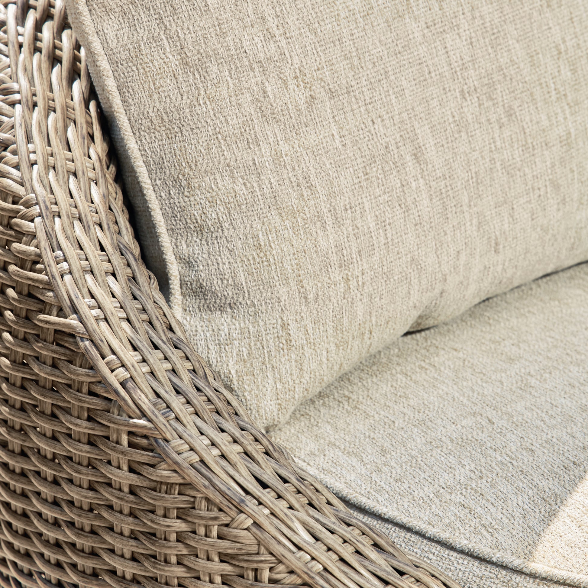 - All-weather resin wicker handwoven over rust-free aluminum frame with durable powder coated finish