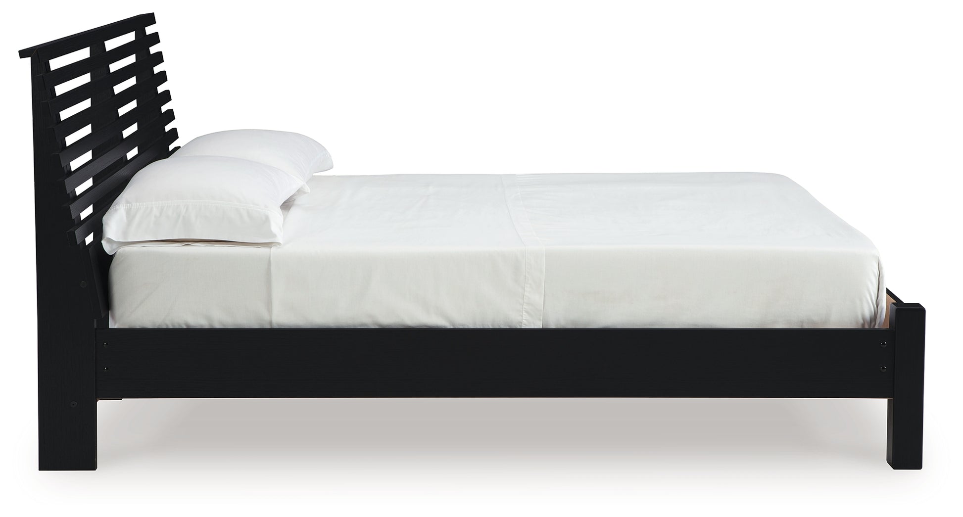 Sophisticated style for the savvy shopper. This panel bed prioritizes affordable, on-trend design. Its subtle replicated texture recalls the natural beauty of wood, highlighting the clean-lined styling. And a matte black finish suits different approaches to modern aesthetics. Mix and match with light and bright hues, or pair with other dark tones for a moody look.