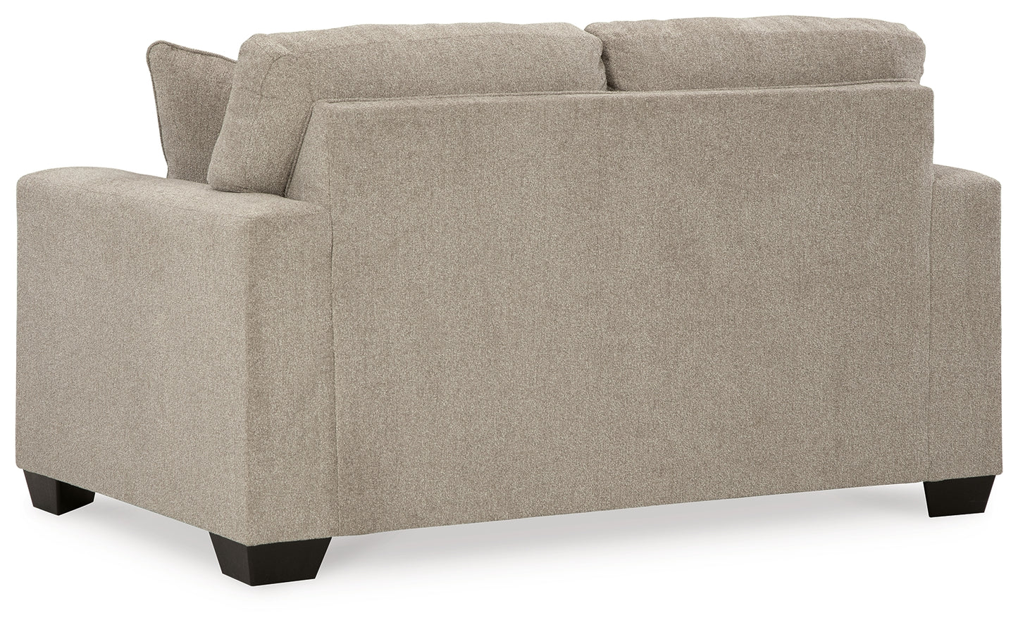 You’re in for a neat treat with this loveseat. Its comfy seats are covered in soft, textural upholstery, and the wide track arms are eager to support your quest for total relaxation. Distressed abstract toss pillows bring a fresh breath of contemporary style while accentuating the loveseat's color.