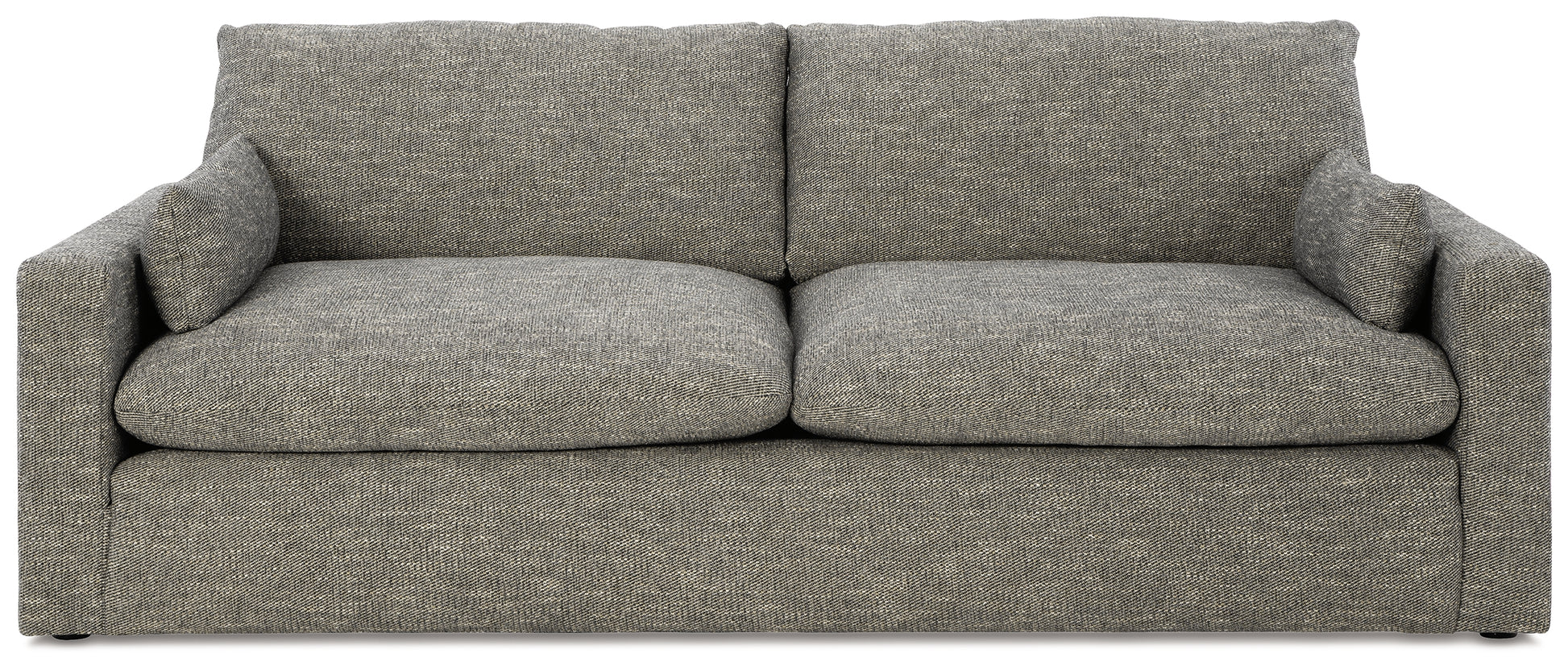 On the days when rest and relaxation seem out of reach, this loveseat provides a positively plush seating experience. Its feather-fiber blend cushions invite you to float away in cloud-like comfort. Striking granite-hued upholstery and a streamlined frame grant this cozy piece a look well-suited to contemporary spaces.