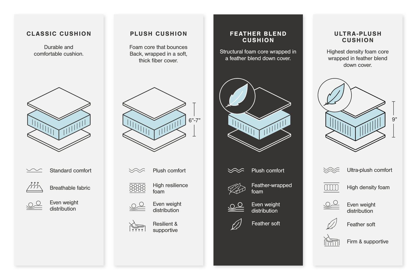 - Feather-fiber blend cushions