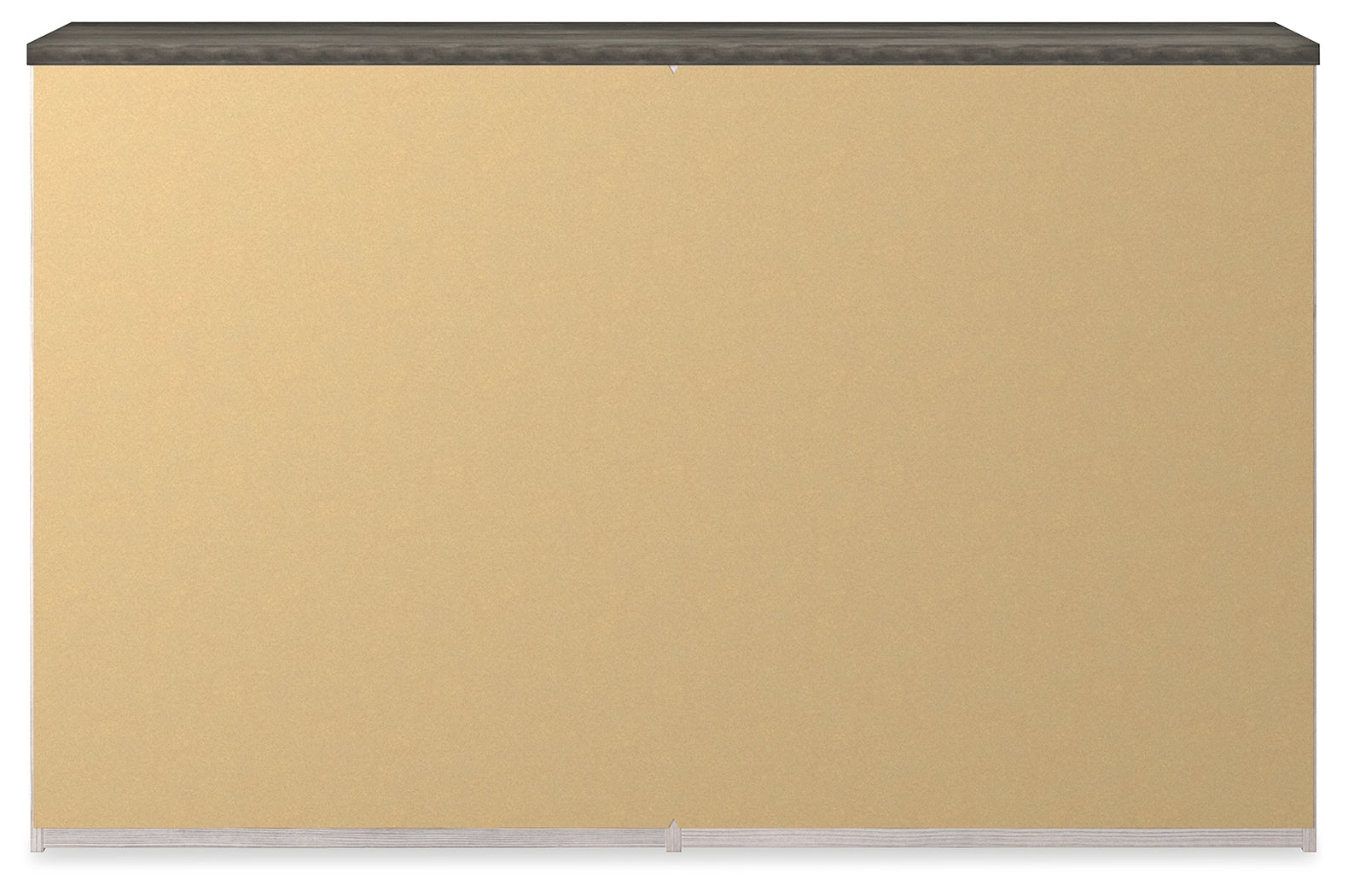 Cool, clean and casually modern. This nightstand's wispy whitewash and gray finish sets the tone for your calming sanctuary. Large linear pulls add dimension and authenticity. Two smooth-gliding drawers neatly accommodate your bedside needs.
