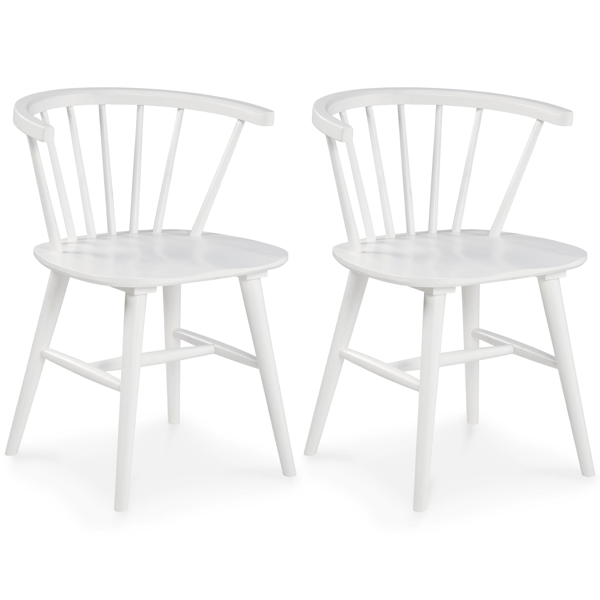 Bring light to your dining area with clean lines and a bright, white finish. The dining room chair sports a low spindle back with turned legs for beautiful simplicity. This functional piece marries minimalism with big style for a delightful combination.