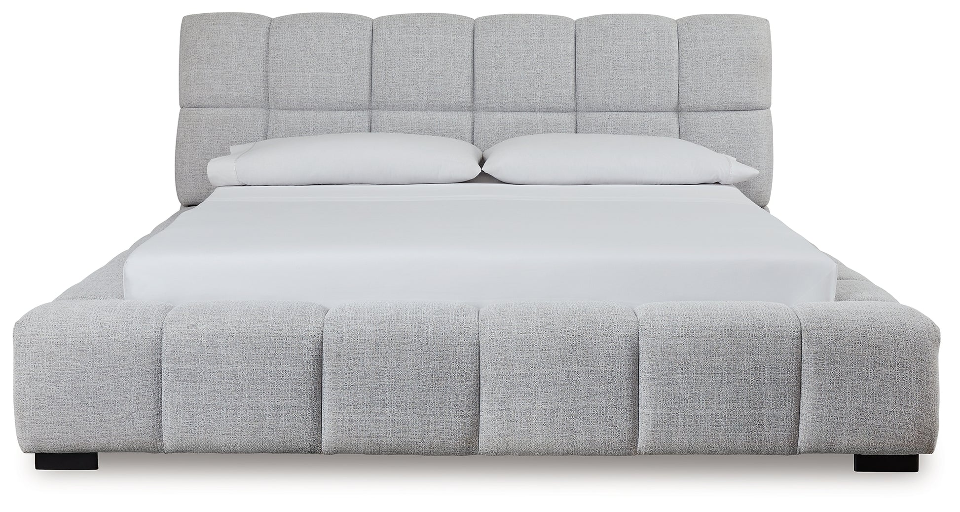 A divine merger of casual and contemporary design, this queen upholstered bed is the upgrade you've been dreaming of. Plush, deep pillowed tufting creates an impressive silhouette that's just as comfortable as it is stylish. And the textured light gray Next-Gen Nuvella™ performance fabric is soft and easy to clean. Now there's a bed with staying power.