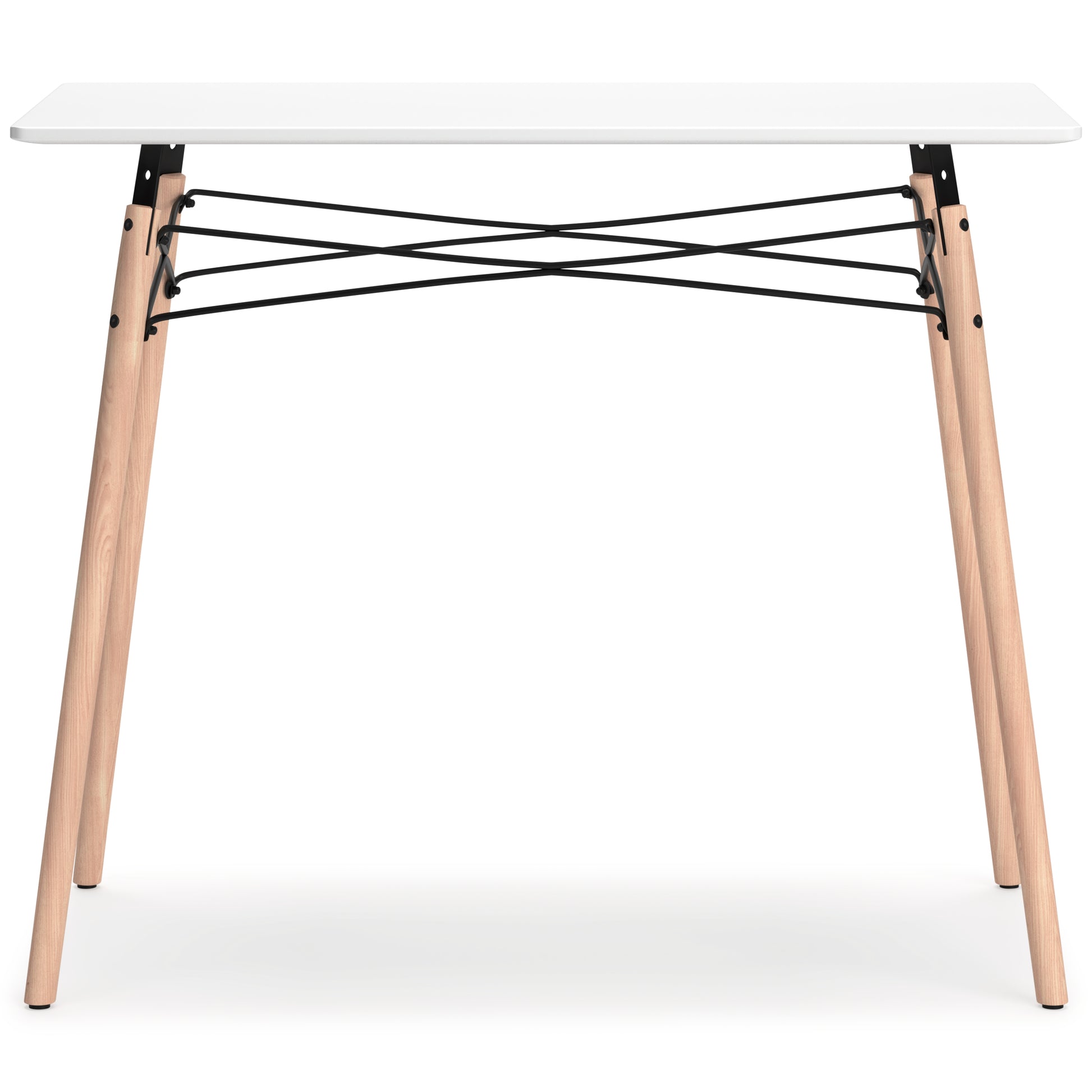 A contemporary take on a classic look, this home office desk adds a touch of artistic flair to your at-home work experience. It's designed with small space living in mind, and is perfect for small apartments and dorms. With its painted black top, black metal framework and wood legs, the rectangular desk is intricately eye-catching, allowing you to work in style.