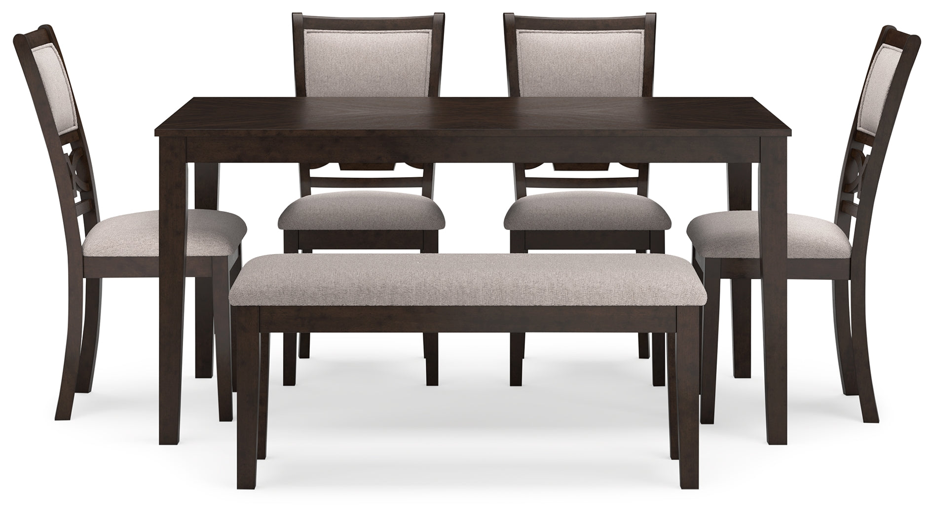 Can’t decide between classic and contemporary? Embrace the beauty of transitional style with this casually sophisticated dining table and chairs. The clean-lined profile and traditional cherry finish merge with contrasting upholstery to create a timeless yet on-trend look when guests gather. A discreetly placed lower shelf simply makes great storage sense.
