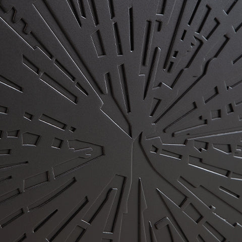 - 3 doors with carved starburst pattern and push magnet door function