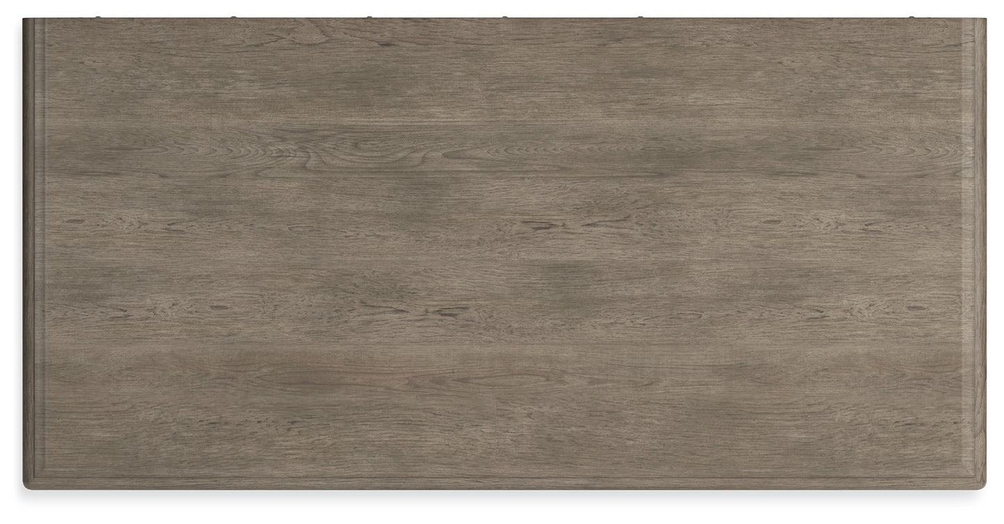 - Light gray finish enhances the natural wood grain