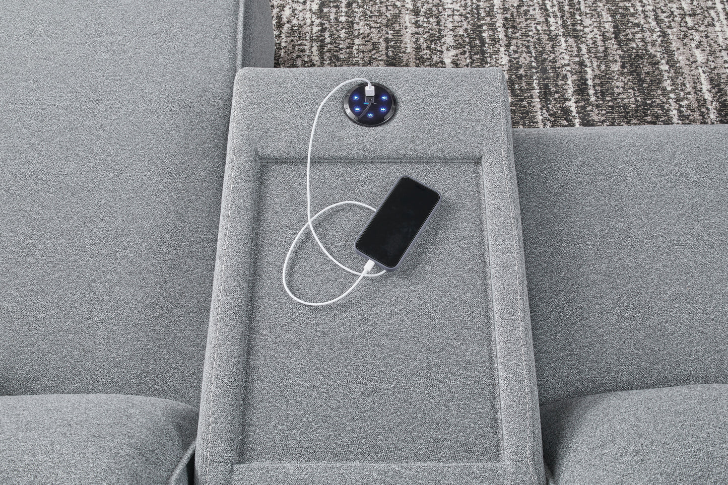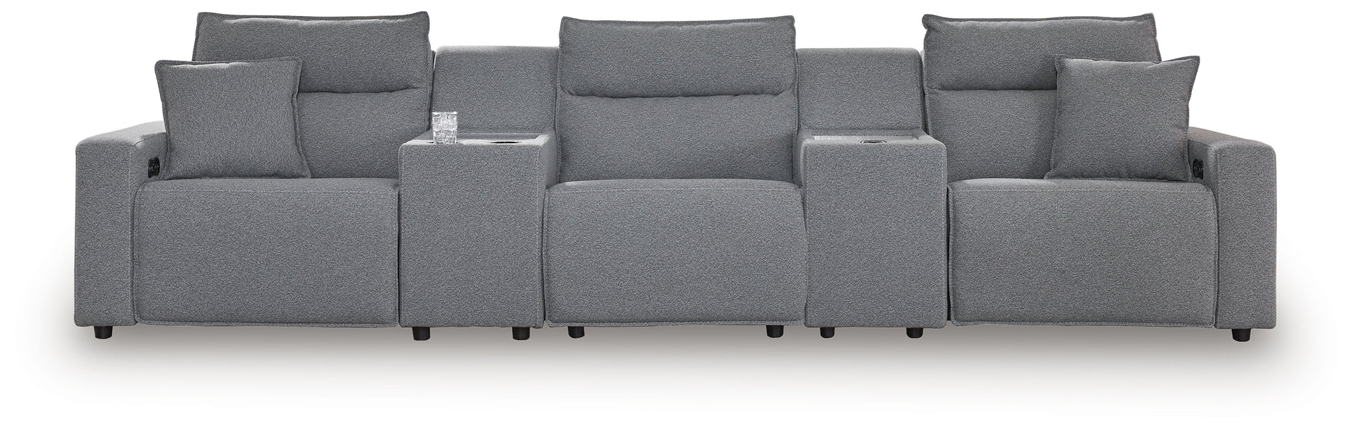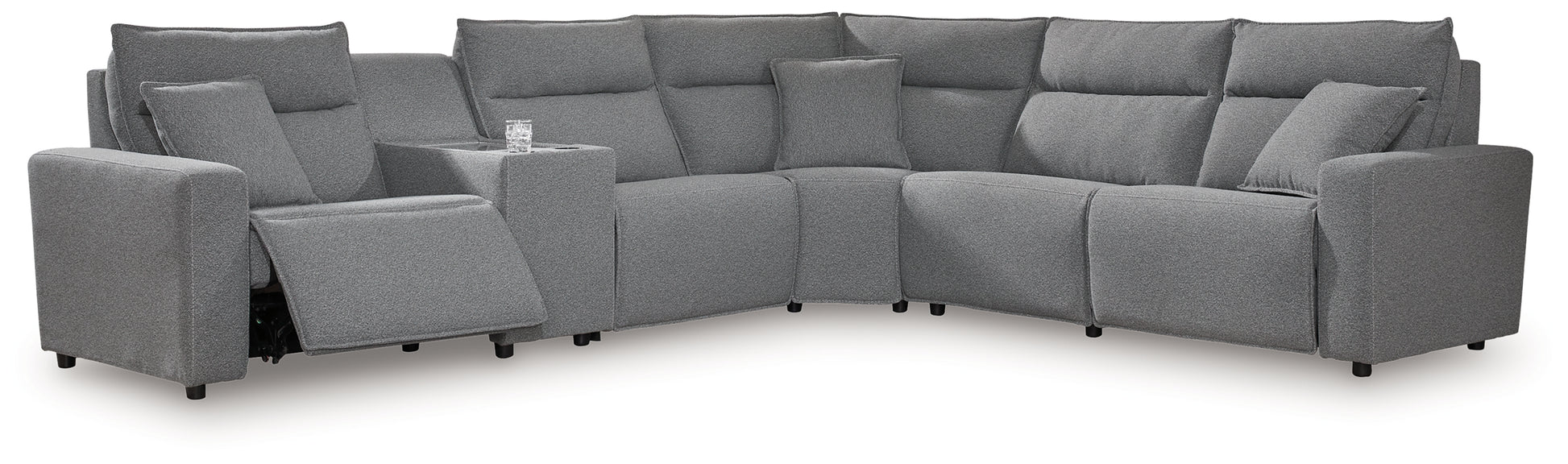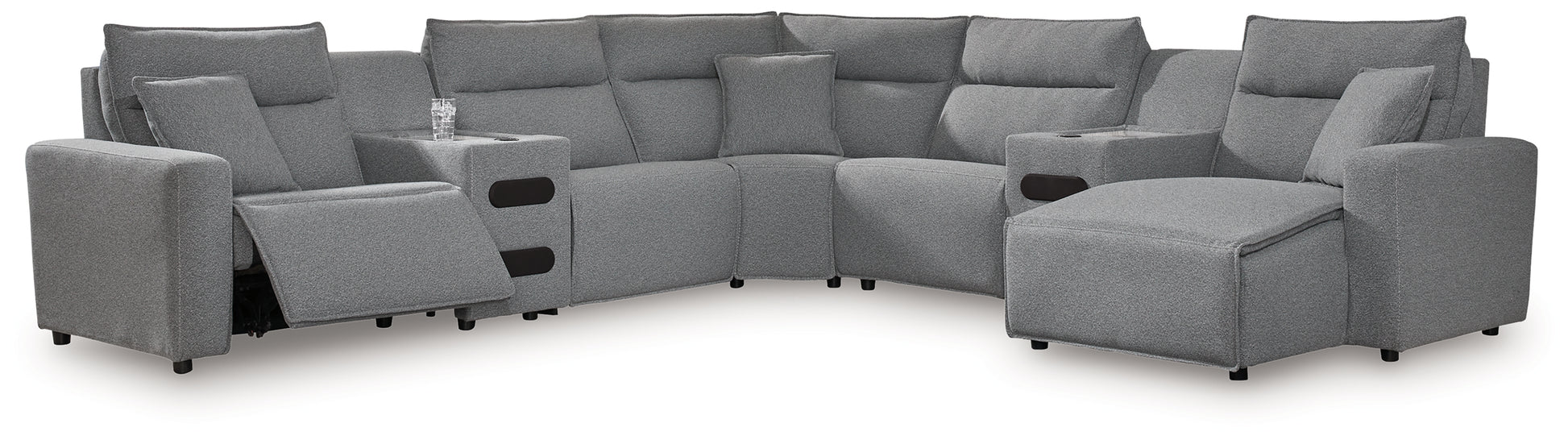 - Includes 6 modular pieces: left-arm facing power recliner, power armless recliner, armless chair, console, wedge and right-arm facing power recliner