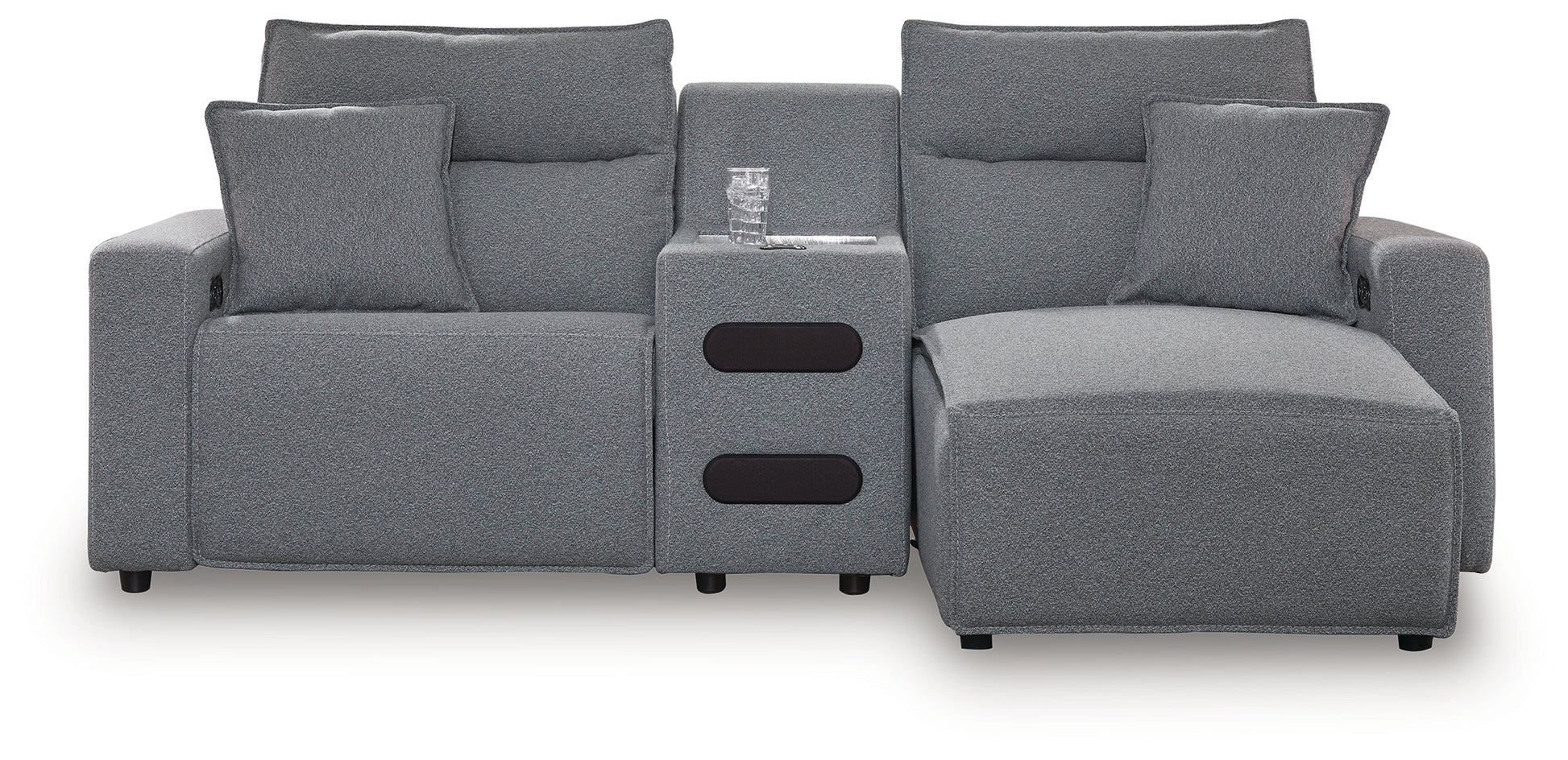 Looking cool and contemporary is great. But when it comes down to it, you’re all about low-maintenance lounging. With the performance fabric on this power reclining sectional, cleaning spills is a breeze. Its modular design caters to your ever-changing needs. And the console's plexiglass top is the perfect beverage perch during family movie night or when guests drop by. It's proof that modern design and superb comfort go hand in hand.