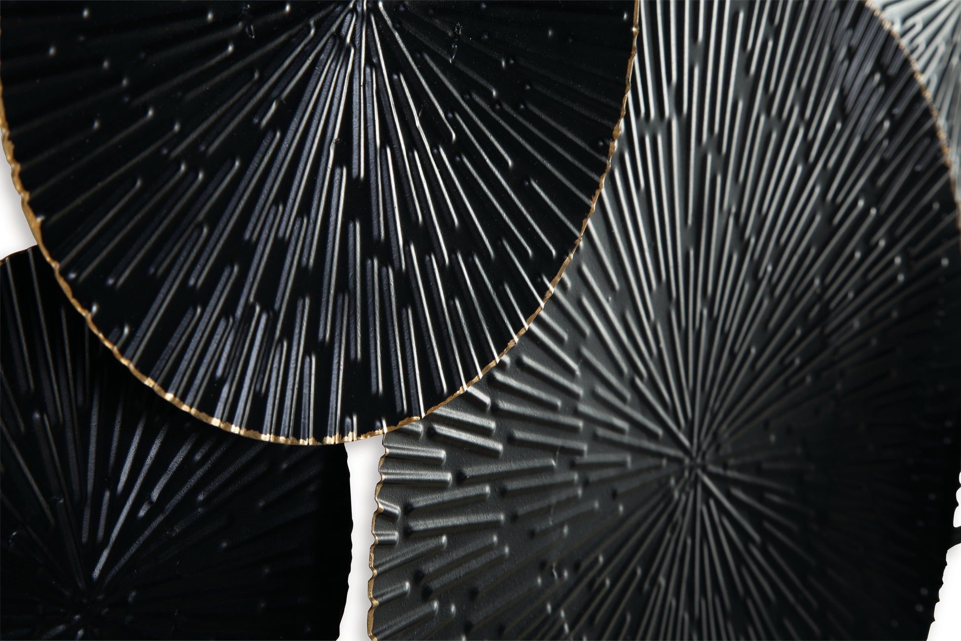 With refined craftsmanship and metal art, this wall sculpture is long lasting and timeless. The perfect combination of workmanship and aesthetics, its geometric design in a black and goldtone finish is sure to make a statement.