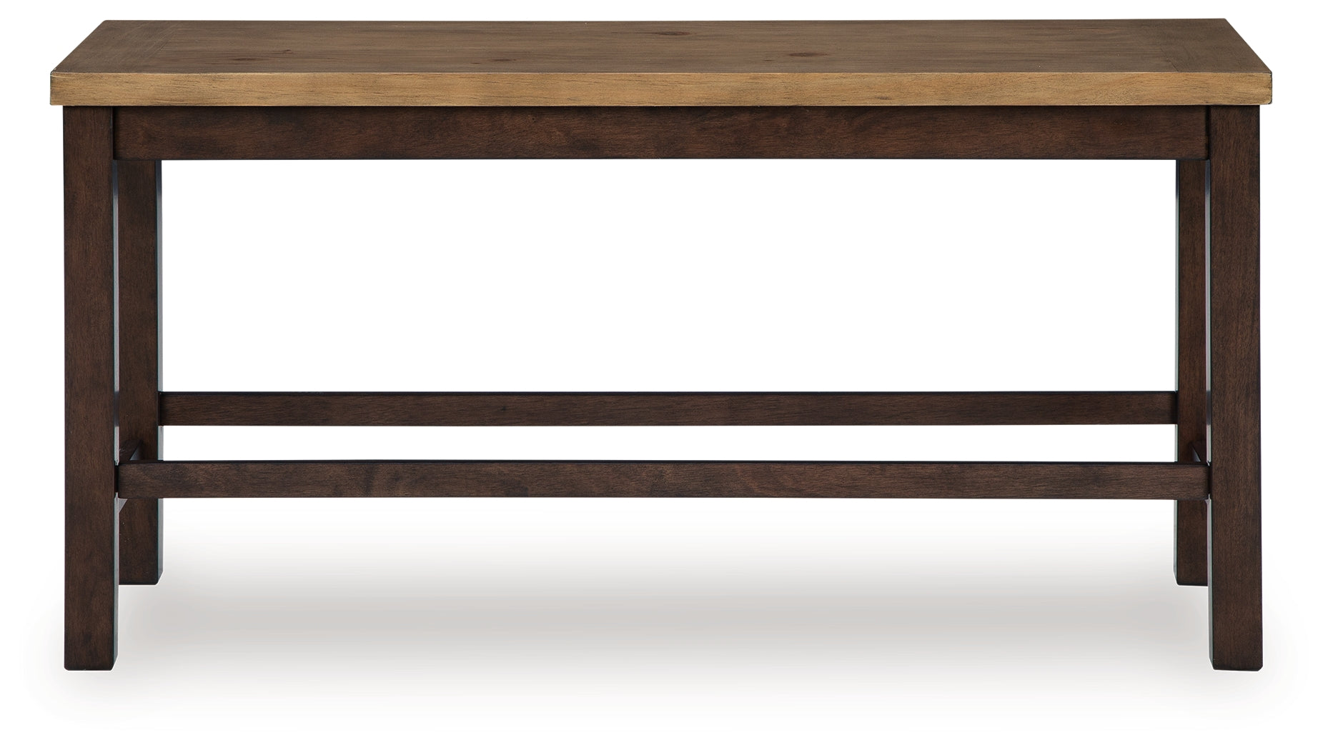 Add a dash of enduring design to your home with this counter height dining extension table. Its two-tone finish contrasts light and dark chestnut finishes for a touch of casual rustic charm that’s both current and timeless. And how about that beautiful double trestle base? A simply striking choice, this table lends a seamless blend of form and function wherever friends and family gather. Drop in the two extension leaves, and you'll have room for absolutely everyone.