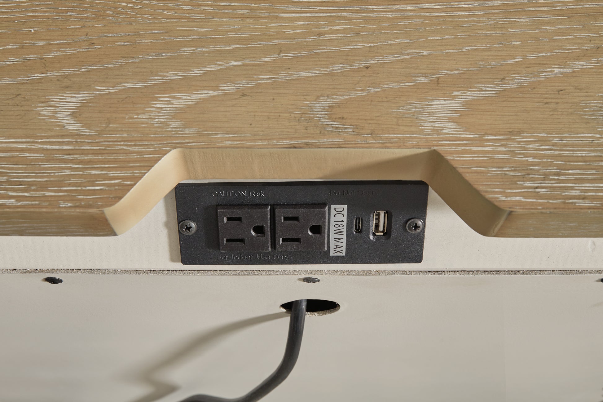 This dresser elevates the art of modern farmhouse design. Its two-tone aesthetic blends antiqued white and light grayish brown for a charming finish. Framed drawer fronts and windowpane cabinets lend a country feel. Conveying a feeling of relaxed comfort, the dresser is sure to carry you away to a dreamy time and place.