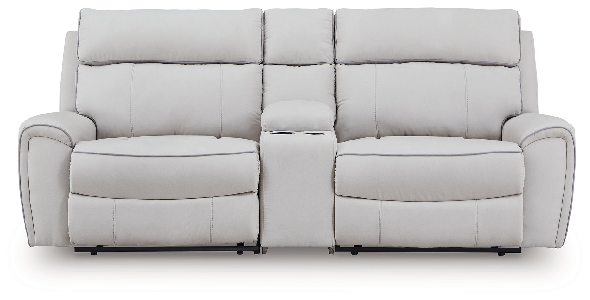 Smart, clean and ultra modern, this power reclining sectional is utterly in vogue. You'll love its indulgent cushions and contemporary bustle back styling. The sumptuous fabric, accentuated with contrasting welting, easily blends with your decor. And with reclining at the press of a button, this modular sectional proves chic design and superb comfort go hand in hand.
