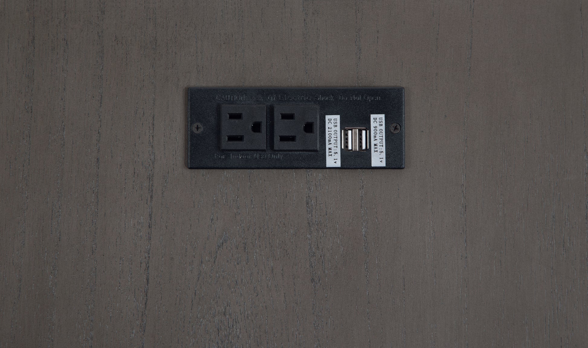 Add big character to a small space with this chairside end table. With its compact size and strong silhouette, it can go anywhere and blend easily into the decor. Less is so much more with the Shaker-inspired design and gray wood tone finish. Loaded with form and function, this end table displays accent pieces and stores essentials securely while keeping devices powered up.