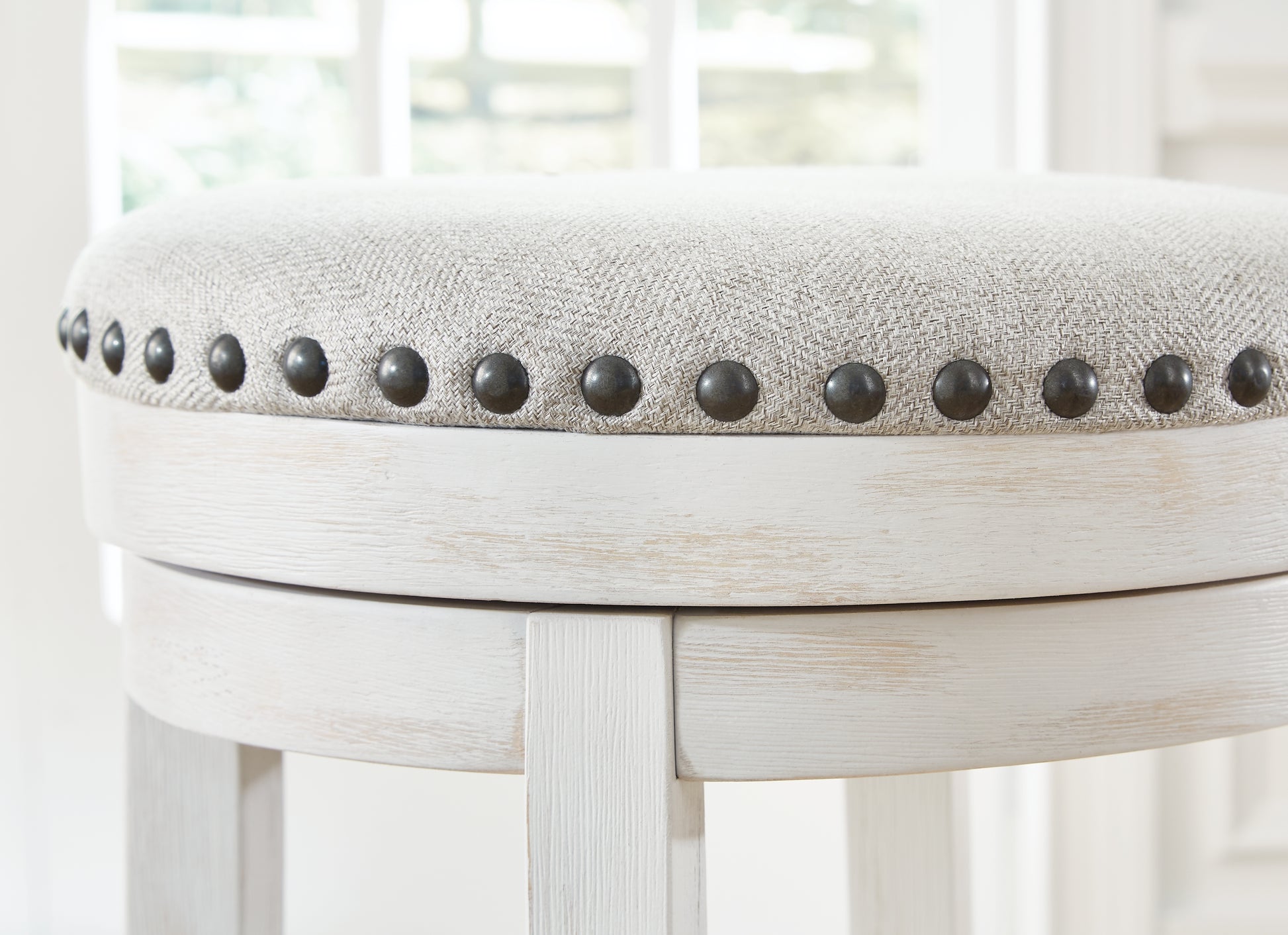 A touch of rustic-industrial style is such a fashion-forward choice, and this counter height bar stool doesn’t disappoint. Its smooth swivel motion adds function, while the nailhead trim brings effortless style. Black faux leather upholstery keeps things edgy. Set this stool by the kitchen bar for a visually intriguing mix of new and old.